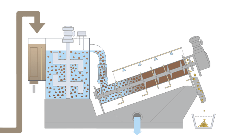 Sludge dewatering itself is not a wastewater treatment, it is a mechanical process to reduce wastewater sludge in weight and volume and separate into liquid and solid components. The most commonly used technologies for sludge dewatering are pressing and centrifuging.